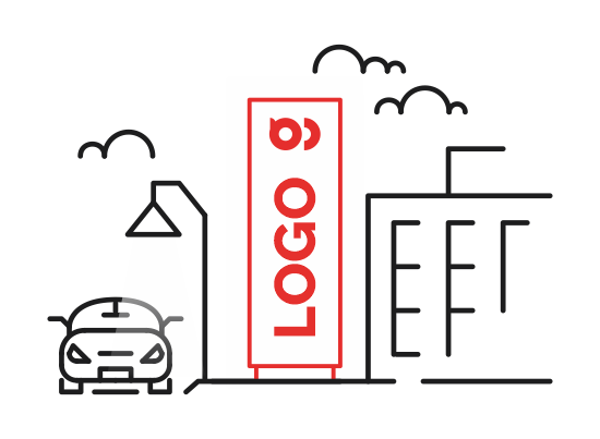 Auffällige Werbeträger für Eingangsbereiche, Parkplätze oder Firmengelände – mit oder ohne Beleuchtung.